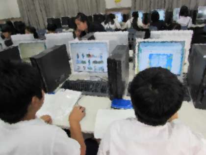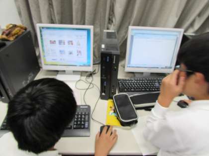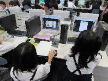 パソコン・まんがクラブでは、パソコンを使って題材を選び、それを子どもたちが模写しています。どの子も、とてもていねいに描いていました。