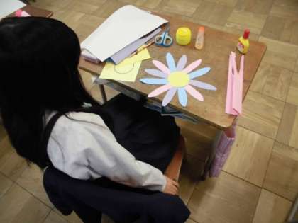 6年生のために画用紙でお花を作りました。色とりどりの花がたくさん出来上がりました。