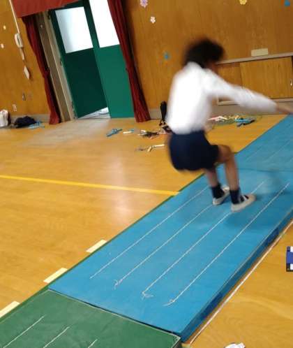 反復横跳び、立ち幅跳びの記録を測定しました。