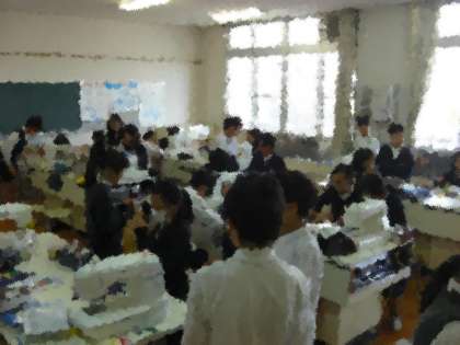 6年1組は、体育「フラッグフットボール」と総合「学習発表会に向けて」、2組は道徳「すすめられても学ばれへんがな」と家庭科「ランチョンマット」の学習をしました。
