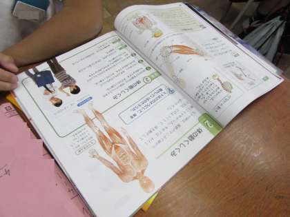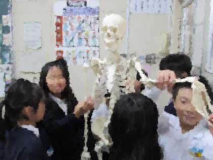 4年の学習の様子をご紹介します。1組は理科で、人体の構造についての学習をしています。今日は、人体模型を使って、関節の曲がり方などについて学びました。