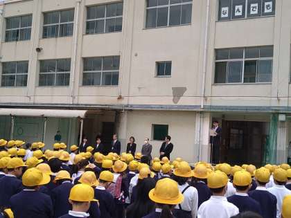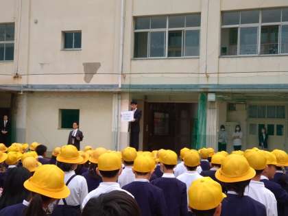 続いて、新しく転任してきた職員の紹介をしました。詳しくは今日の学校だよりでご確認ください。