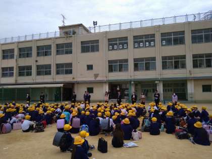 始業式の後、学級担任の先生などの発表がありました。発表を終え、学年ごとに集まって、新しいクラスの発表を行いました。