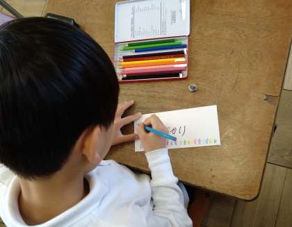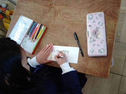 ていねいに字を書き、色鉛筆で絵も描いています。