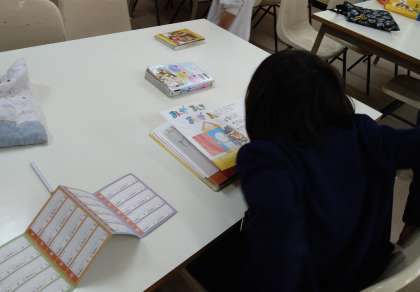 自分のすきな本を読んだり、担任の先生に本を読んでもらったりしています。