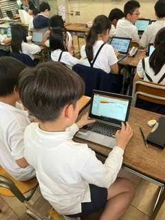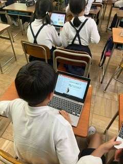 パソコンのパワーポイントを使って、自己紹介カードを作っています。
