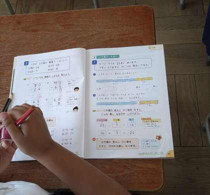 くりさがりのある筆算の問題をしています。