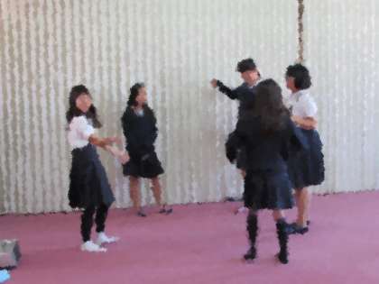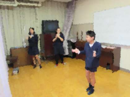 ダンスクラブです。今日も、グループに分かれて、それぞれ創作ダンスの練習に取り組んでいます。