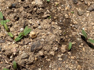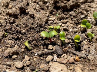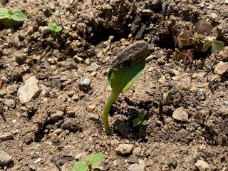 上から、ひまわり、ホウセンカ、マリーゴールドの子葉が出ました。