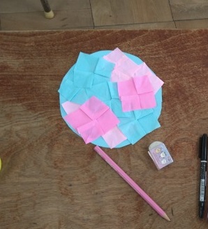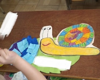 カタツムリと大きな葉っぱとあじさいを組み合わせて完成です。