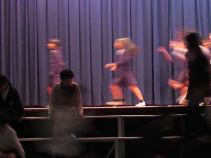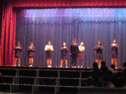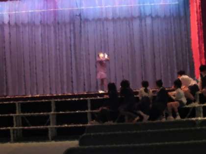 5年生は学習発表会で「セロ弾きのゴーシュ」に取り組みます。講堂で、練習をしています。舞台の照明も工夫して、雰囲気を出そうとしています。