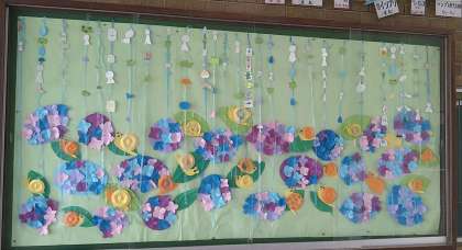 玄関掲示が完成しました。 6月は、4年生の作品です。