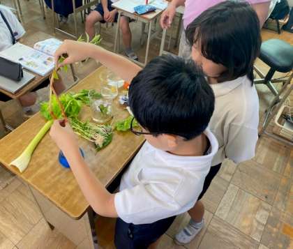 植物に取り入れられる水について実験をしました。