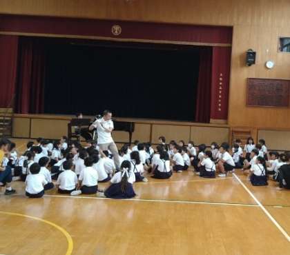 音がよく聴こえるように、子どもたちの近くまで来て演奏してくれました。