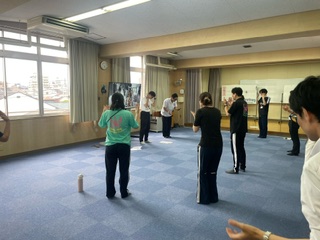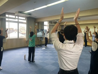 楽しみながら活動できるように、「アヒルの体操」を練習しています。