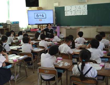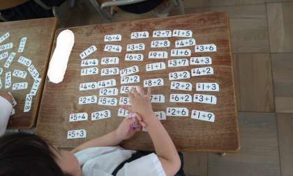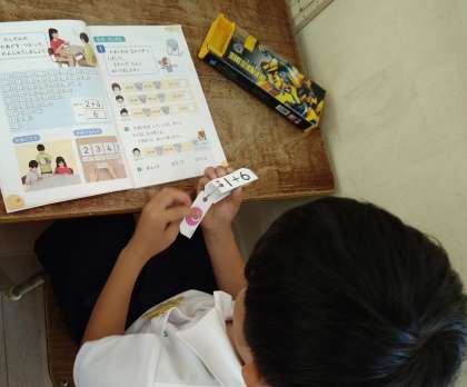 たしざんカードを使ってたしざんの練習をしています。