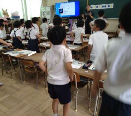 「しろくまのジェンカ」をみんなでリズムをとりながら、ジャンプして歌っています。 とっても楽しそうです。