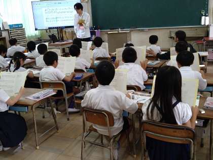 千本小学校の校歌の練習をしています。 大きな声で歌うことができました。