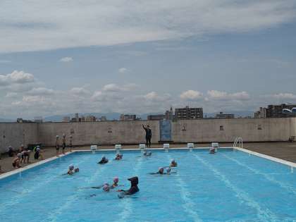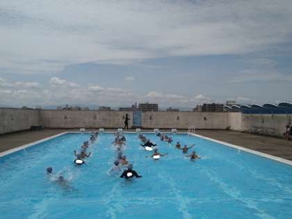あひるの体操やたからさがし、けのびやバタ足の練習をしました。