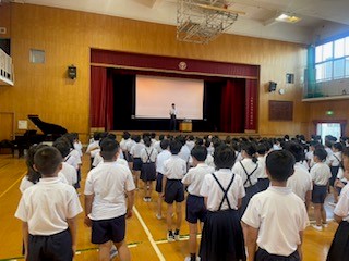 1学期の振り返りや夏休みの過ごし方についてお話を聞きました。