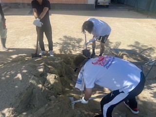 7月26日(金)に教職員と地域の皆様で芝生管理作業をしました。