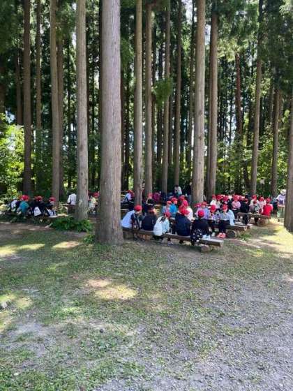 昼食のあとは芝滑りをして楽しみ、各部屋に入って登山の準備です。