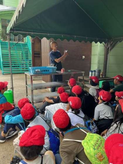 宿舎の方の説明を聞き、アイスクリームづくりに取り組みます。バニラ、チョコ、ストロベリーから味を選びます。