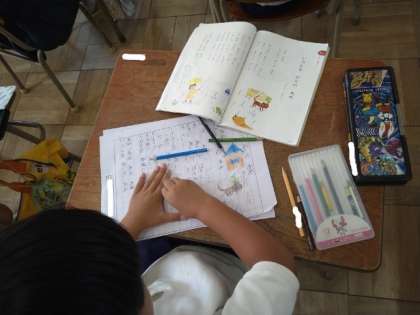 ていねいに一文字ずつ書いて、絵を描いて仕上げました。
