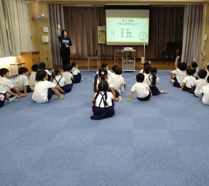 最初に、養護教諭から「歯」についての保健指導がありました。