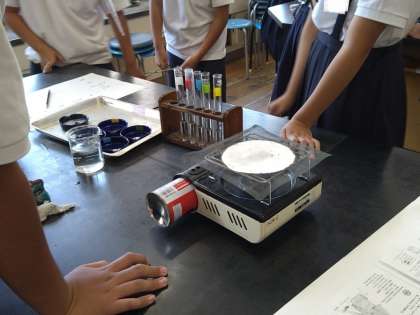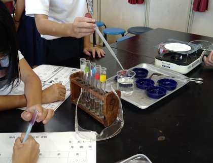 水溶液の実験をしています。