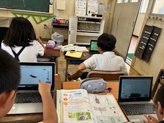 タブレットを使って、生き物の仲間分けクイズをしたり、こん虫のひみつについて調べたり楽しく学習しました。