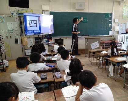 漢字「四」の学習もしました。書き順を確かめて、ていねいに書くことができました。