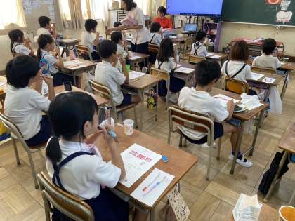 歯垢で赤く染まったところを歯みがきしました。赤いところがなくなるように丁寧に磨きました。おうちでもぜひ歯みがきのしかたをチェックしてください。