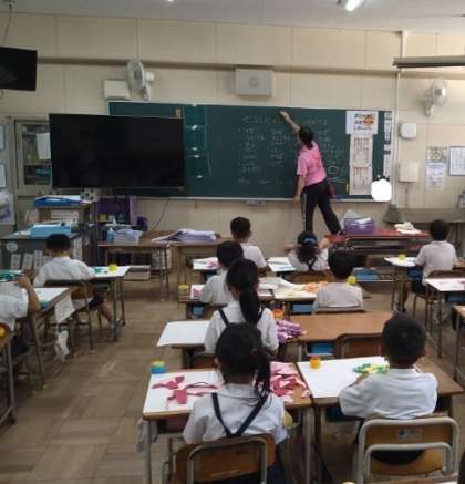 やぶいた画用紙から、どんなものを作ろうか考えています。