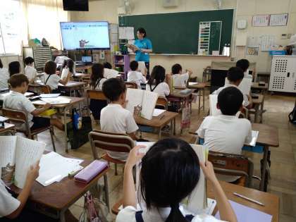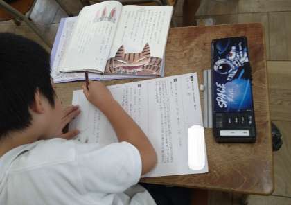 ももを食べながら、ねこが考えていたことをプリントに書きました。