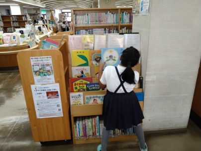DVDコーナー、外国語で書かれた絵本を見つけました。