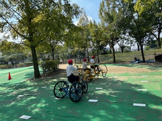 係の方の説明をしっかり聞いて、様々な自転車に楽しく乗っています。