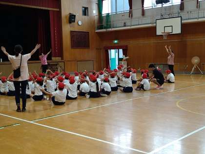 運動会のダンスの練習をしています。
