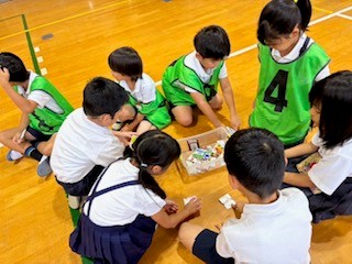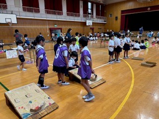 10月4日(金)におもちゃ祭りがありました。2年生が生活科でつくったおもちゃで1年生と一緒に遊びました。2年生が遊び方を1年生にやさしく説明しながら、楽しく活動していました。