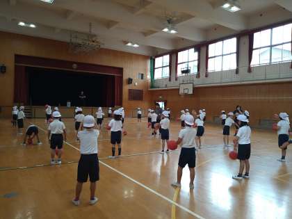 ボールを使って、団体演技の練習をしています。