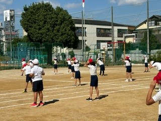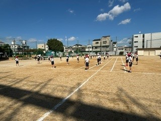 運動場でダンスの練習もしました。位置の確認を重点的にしました。