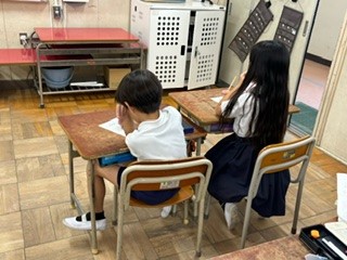 図工「ひまわりの絵」についての振り返りで、プリントに工夫したことや頑張ったことなどを書いた。