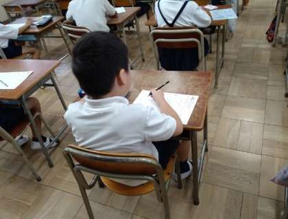 国語「ビーバーの大工事」の漢字テストをしています。
