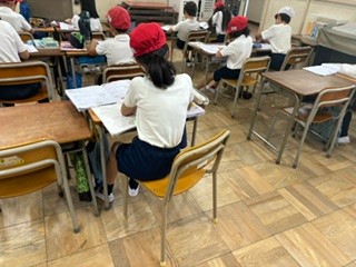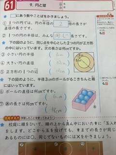 円と球の問題を算数ドリルを使って行いました。