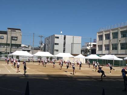 運動場でダンスの練習をしました。