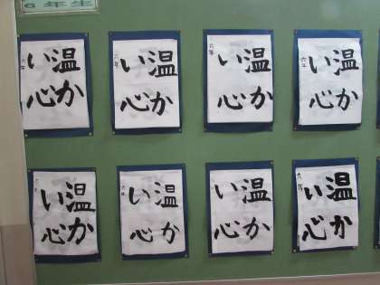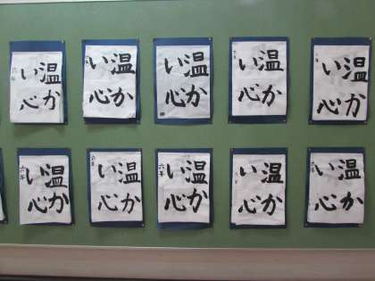 6年生の作品をご紹介します。毛筆書写「温かい心」です。