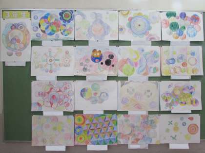 12月11日(金) 3年生の作品です。コンパスを使ってデザインし、ていねいに色を塗っていきました。