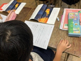 「サーカスのライオン」の単元で、「ウォー」にどんな気持ちがこめられているかなどを考えました。友だちとも話し合いをしました。