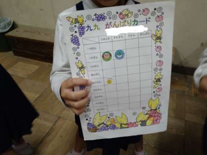 おぼえた九九を担任の先生に聞いてもらっています。
