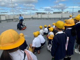 屋上で警備係の人に機材を切るところを見させて頂きました。